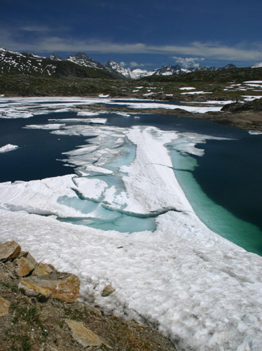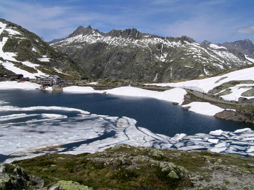 Třetí den byl zvolen za den odpočinkový a tak se naplánoval autovýlet po okolních průsmycích. Vyrážíme dolů do údolí a přes Interlaken kolem jezera Brienzersee pak dál dlouhým pozvolným stoupáním na průsmyk Sustenpass 2224m. Bylo to příjemné, časté vyhlídkové zastávky, vodopády, pozorování okolních vrcholků, focení svišťů ve stráních. Byli zde poměrně plaší a díky zoomům se dali nalovit i nějaké snímky,jsou to hezcí tvorové. A pokud nebyli vidět, člověk se vyřádil na kytičkách, o které zde není skutečně nouze. Od Sustenpassu jedeme dál na průsmyk Furkapass 2436m, jevíc se takový "neobydlený" a pak přes údolí na průsmyk poslední Grimselpass 2166m,u kterého si děláme malou procházku kolem krásných ledových jezer plných ker. Po hodince se vracíme do Grindelwaldu, ve kterém si díky času konečně prohlédneme centrum a ostatní pro nás zajímavá místa. Oyčejně není čas, díky brzskému rannímu startu na vejšlap. |