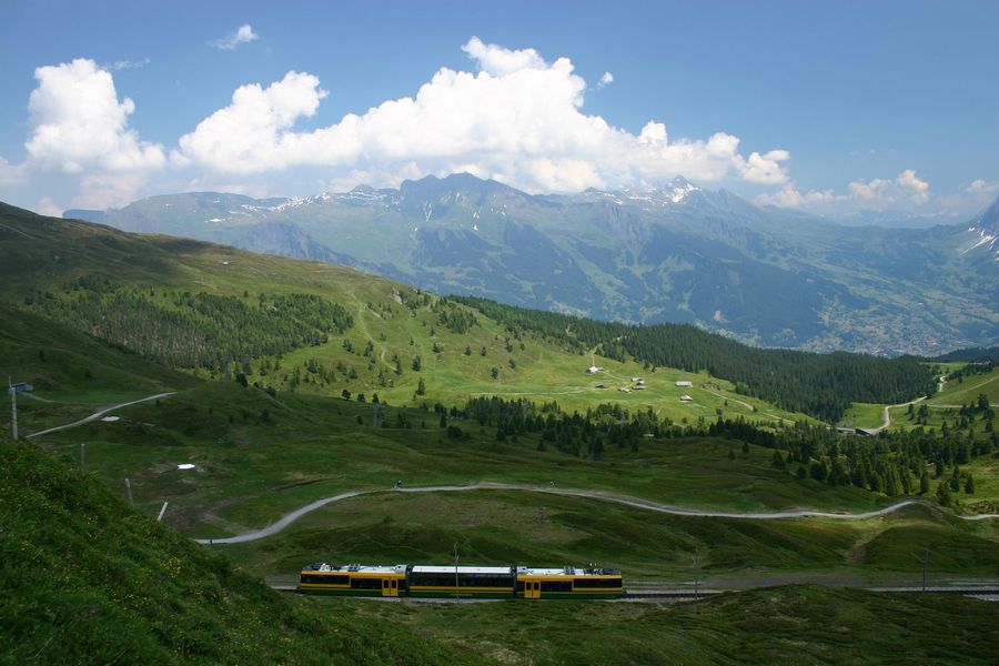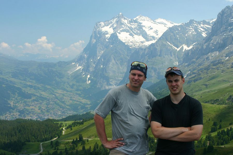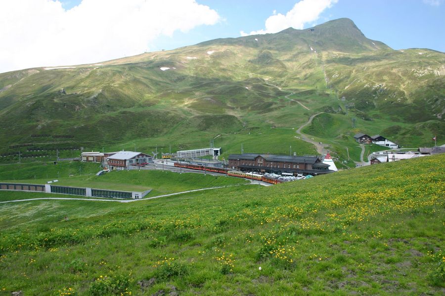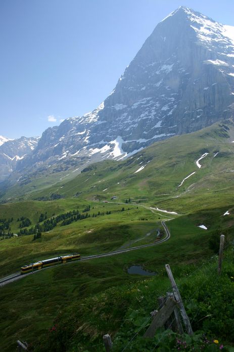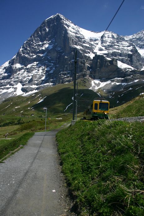 Pátý poslední slunný den tady v Alpách vyrážíme vlakem do zastávky Alpiglen 1615m, ze které navážeme na turistickou cestu Eiger Trail - cestu těsně pod Eigerem až na Eigergletscher 2320m, kterou máme dnes před námi. Cesta nebyla zase tak náročná a rychle utíkala, ale ranní chlad a průvan pod stěnou, kde se slunko dostane až odpoledne, nebyl vůbec příjemný. Cestou tu bylo i spousta pěkné květeny k focení. Poslední kilometr byl stále více lemován zbytky rozbředlého a zrádného sněhu, pod kterým místy často tekla voda. Do jedné takové si i Honza šlápnul. Po několika hodinách cesty nakonec měníme plán, vynecháváme Eigergletscher a zkracujeme si cestu pod tratí rovnou na Kleine Scheidegg. Cestou máme možnost pozorovat různé druhy vlaků, zdolávajíc místní údolí, dokonce máme možnost a čas si více prohlédnout místní velkolepé nádraží Kleine Scheidegg, křižovatku tří železnic. Po delší přestávce v krásné slunném dni nás čeká již jen sestup opět na Alpiglen a vlakem dolů do Grindelwaldu. Dnes to muselo být kratší, neboť večer se chystáme již na noční odjezd domů. |