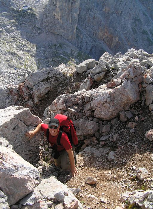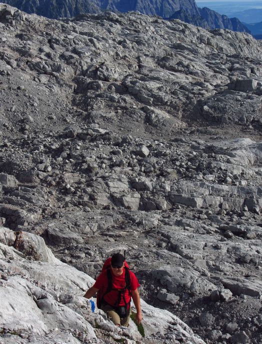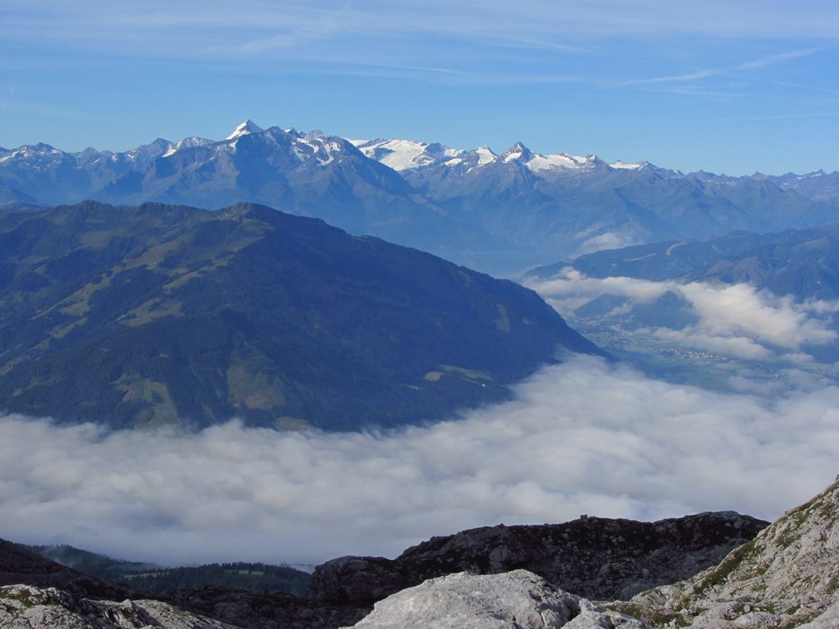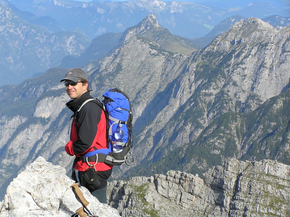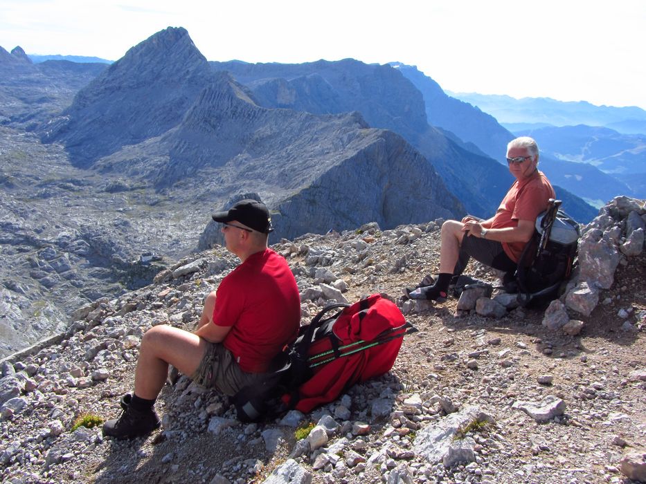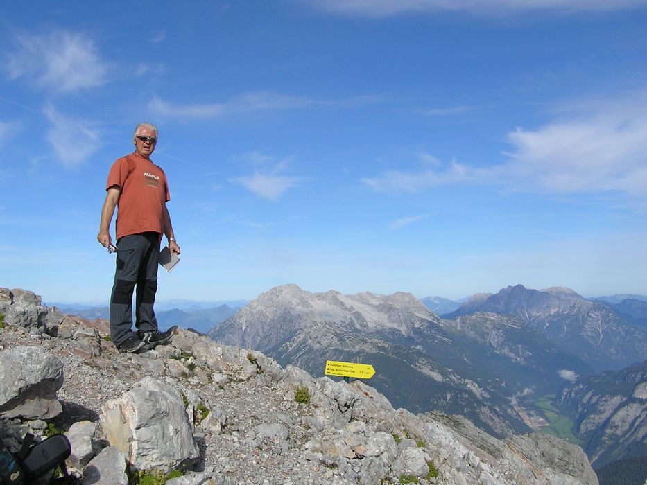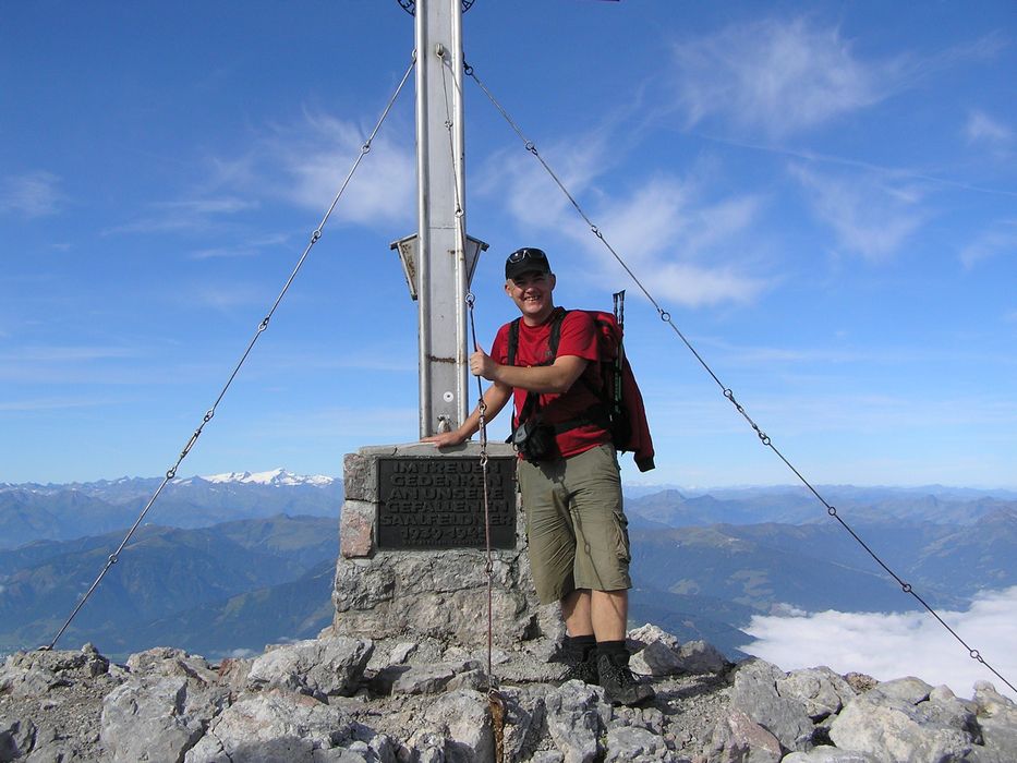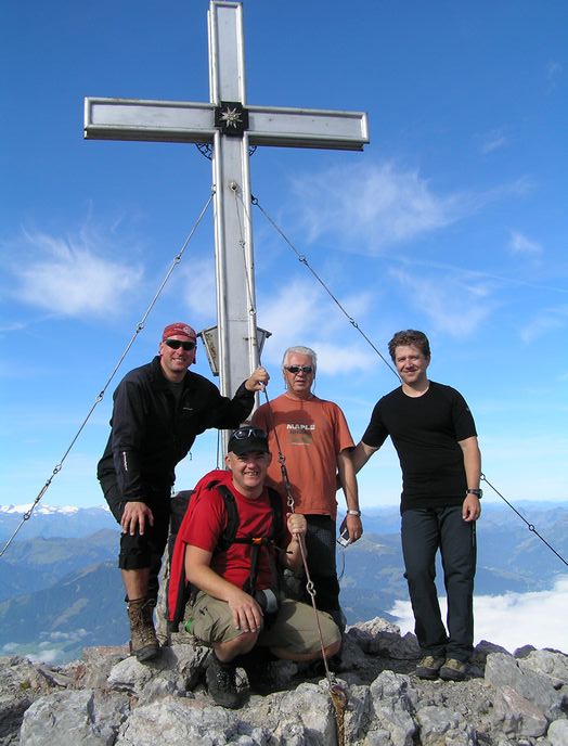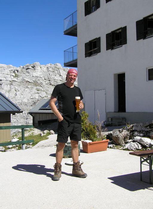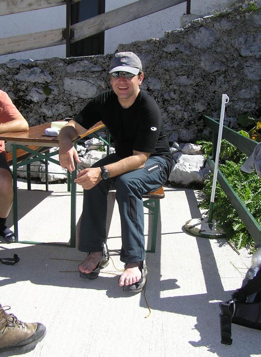 Nedělní ráno nám malým oknem do pokoje prostoupily sluneční paprsky a tak se vstávalo velmi pozitivně. Nálada byla skvělá. Rychlá snídaně a již krátce po osmé vyrážíme na blízký Breithorn 2450m. Jsme rychlí a již za hodinku jsme na vršku jako jedni z prvních. Rozkryjí se nám nádherná panoramata bez mráčku. Nejde se nezdržet. Celé okolí jako na dlani. Po malé pauze jsme si s Petrem chtěli ještě zajít na nedaleký Mitterhorn, ale asi v půli cesty jsme se nakonec vrátili, aby na nás kluci dlouho nečekali, protože cesta byla opravdu těžší a časově bychom to rychleji než za dvě hodinky asi nestihnuli. Navíc dnes nás čeká časnější odjezd domů a proto i dlouhý sestup až na samotné parkoviště k autu. Z Breithornu svižně sestupujem zpět na chatu, kde je i dnes nespočet lidí. Po malé pauze při posledním pivečku v nastupujícím horku poledního slunce se uchylujeme na sestup. Cesta utíká rychle, míjíme davy lidí a horko je již poněkud nepříjemné. Jsme rádi, že jsme na cestě dolů a nikoli vzhůru. Byl to kontrast s pátečním tříhodinovým výstupem za deště na chatu. Nakonec rozpálená chodidla chladíme v horském potoku, ba dokonce někdo se chladí celý :-). Kolem třetí hodiny dorazíme v pohodě k autu a vyrážíme do Prahy. |