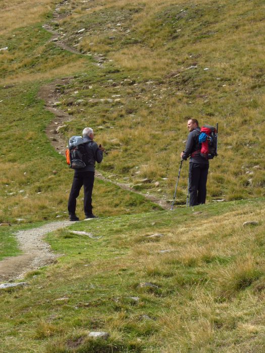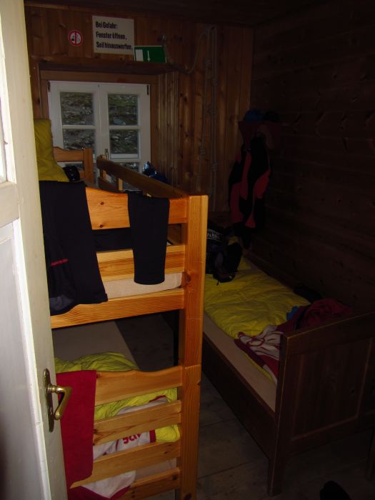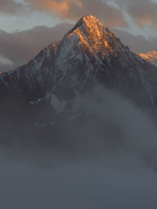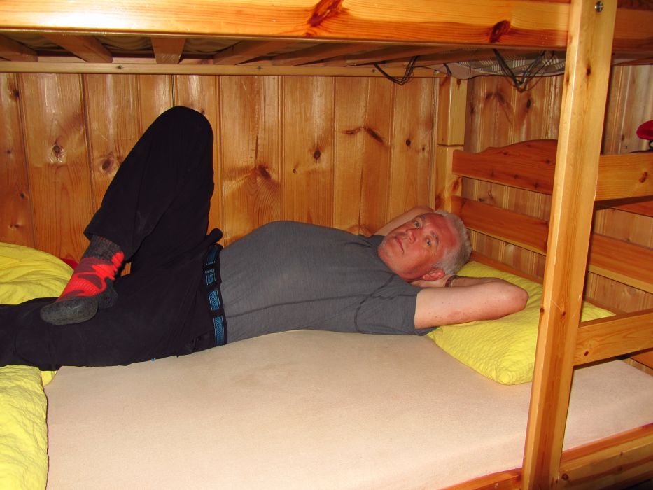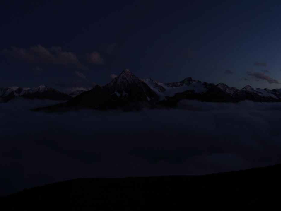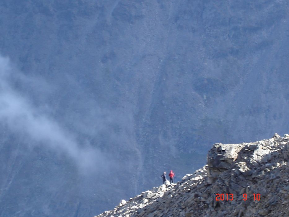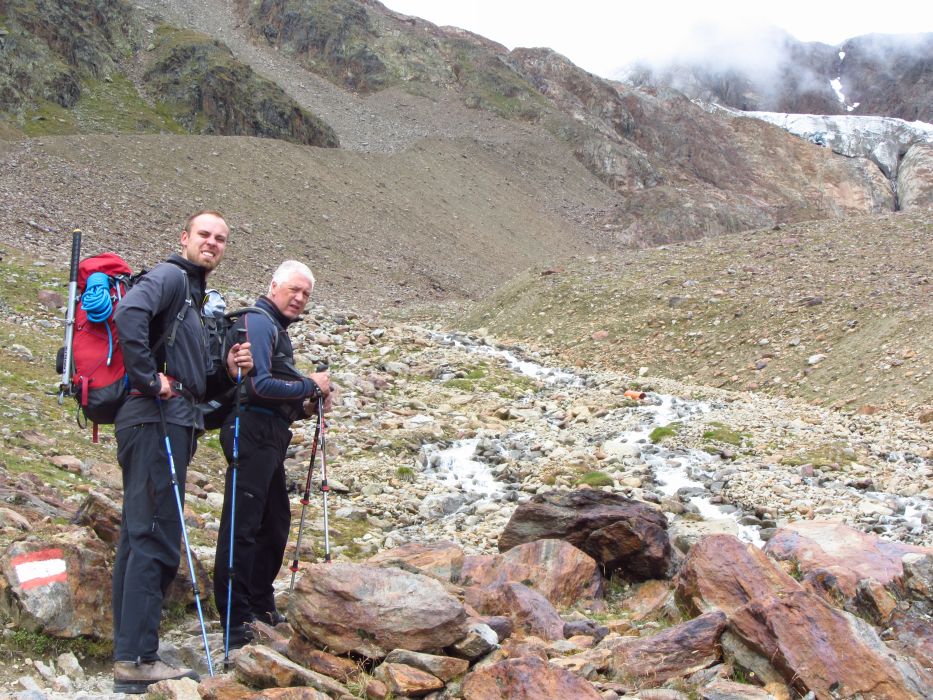 V pondělí byl přejezd do Ventu přes Passo Rombo, zaparkovali jsme u lanovky, ta nás vytáhla do cca 2300m a pak nastal první pochoďák s plnou polní na čtyři dny a na ledovce k chatě Breslauer Hütte 2844m, kde jsme měli zamluvený nocleh. Když jsme se ubytovali a dali si pivko, tak nás krásné počasí ještě vyhnalo na výstup na horu Urkundholm 3113m, abychom splnili normu plánovaných třítisícoveka pokoukali na jižní stěnu Wildspitze, druhé nejvyšší hory Rakouska. No a pak jsme se při i po večeři kochali nádherným západem slunce nad Alpama a ledovcema. |