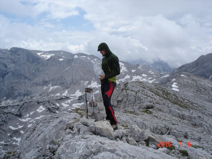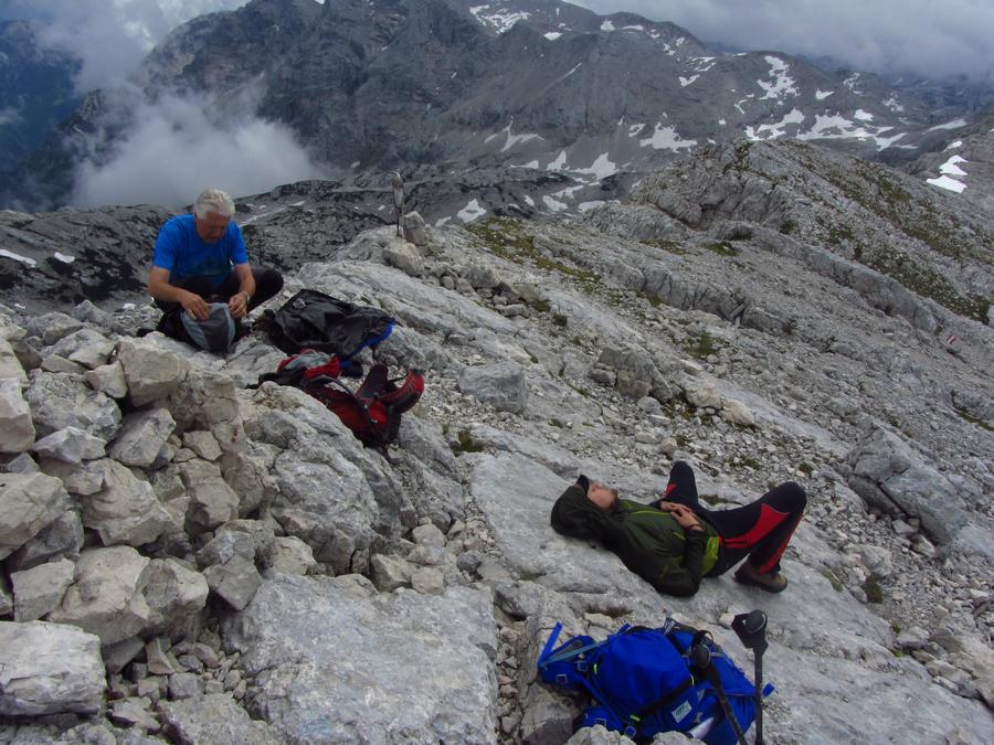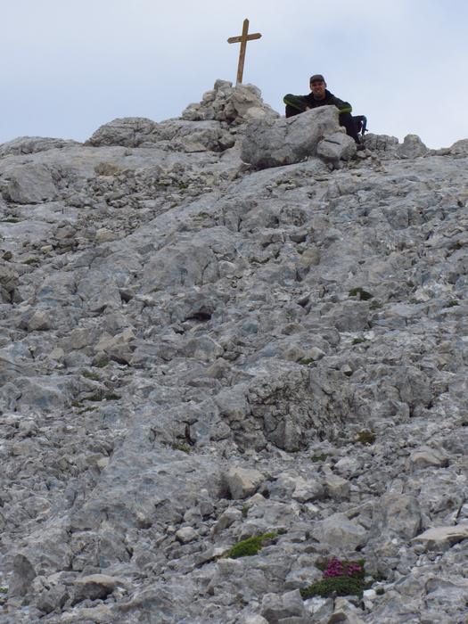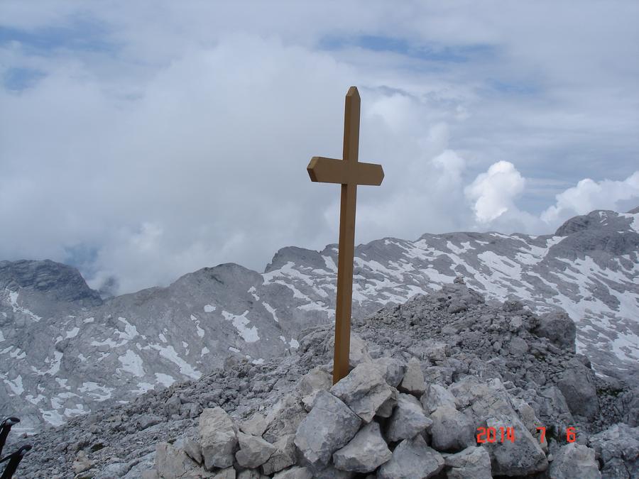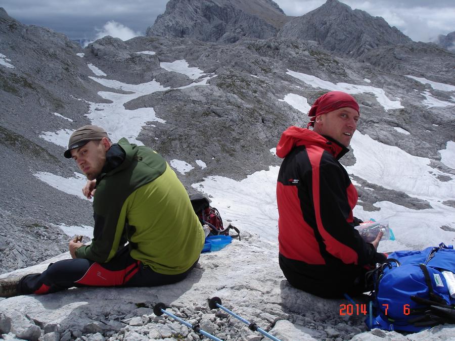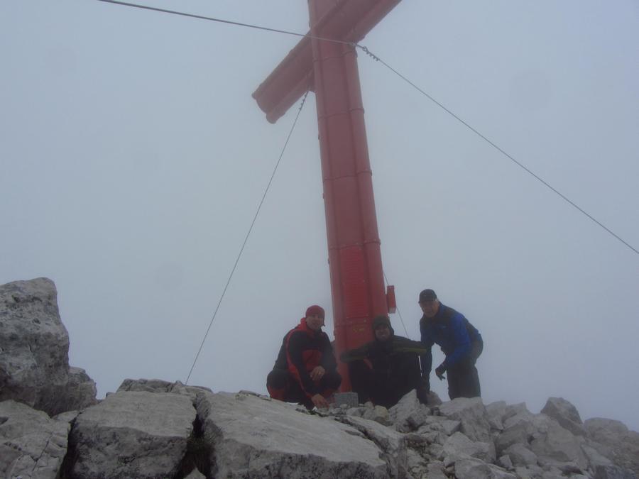 Předpověď počasí a i ranní zamračená realita nám změnily program, místo ferraty, jsme vyrazili k nejvyššímu bodu oblasti naGrosser Priel 2515 m. Za asi dvě hodiny jsme byli na vrcholu u obrovského rudého kříže, sice nebylo nic vidět, ale dali jsme si tady svačinku a začali sestupovat. To už začalo vykukovat sluníčko, otvíraly se pohledy na všechny strany, a tak jsme se rozhodli vyrazit ještě na další výrazný kopec v okolí Temmelberg 2327 m. Vrchol byl opět dobyt a z vršku od malého křížku byl nádherný výhled na okolní hory a na stále ještě zasněžené pláně. Po asi půlhodině válení na vrcholu jsme se začali vracet k chalupě. No a avizované bouřky a déšť přišly až večer, kdy už bylo na stole pivko a rakouské dobroty. |